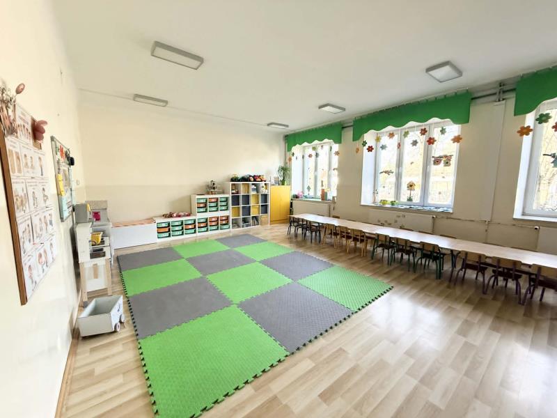 Do dyspozycji dzieci jest pięć przestronnych sal z dostępem do multimediów, wyposażonych w nowoczesne pomoce dydaktyczne. Na terenie placówki znajduje się bezpieczny, ogrodzony plac zabaw oraz boisko sportowe. Zapewniamy doświadczoną, profesjonalną kadrę przyjazną dzieciom. Nasi wychowankowie zyskują umiejętności społeczne, budują pewność siebie, a poprzez zabawę, zajęcia plastyczne, muzyczne i ruchowe rozwijają wyobraźnię oraz zainteresowania. Wszystkie dzieci mają możliwość korzystania z szerokiej oferty zajęć dodatkowych, m.in. ogólnorozwojowych, tanecznych i sportowych.