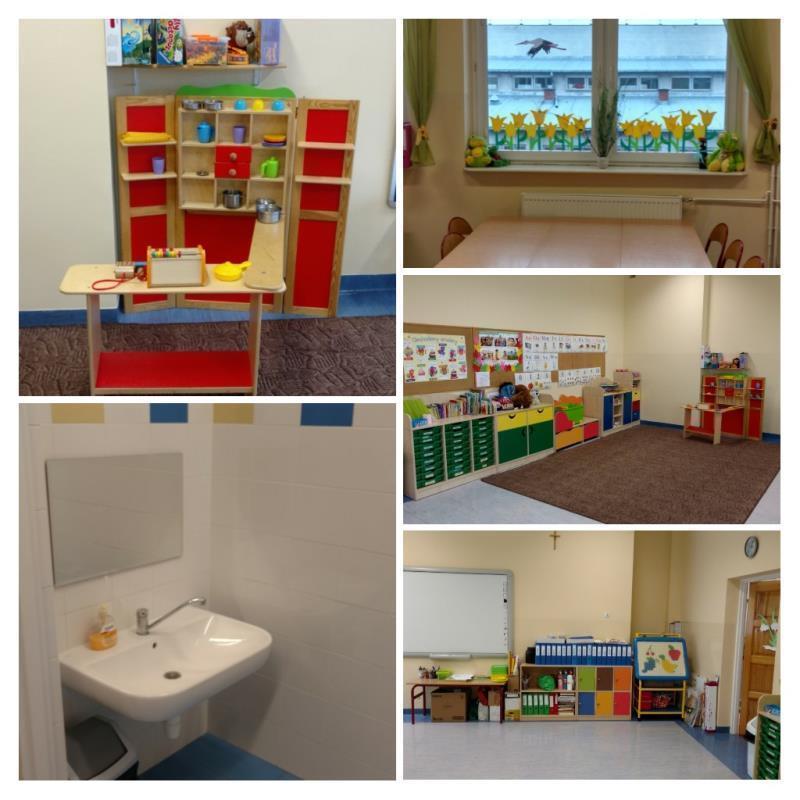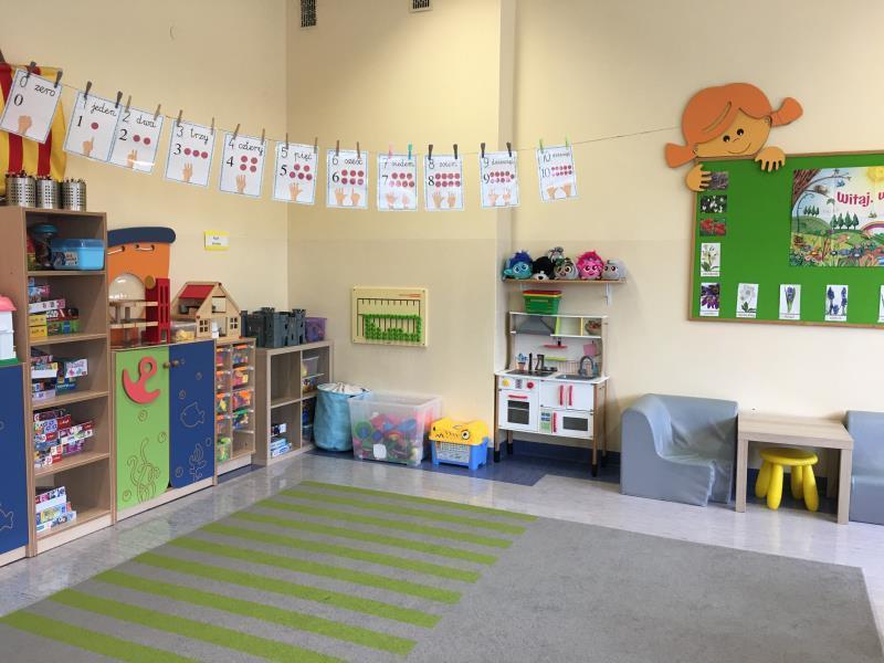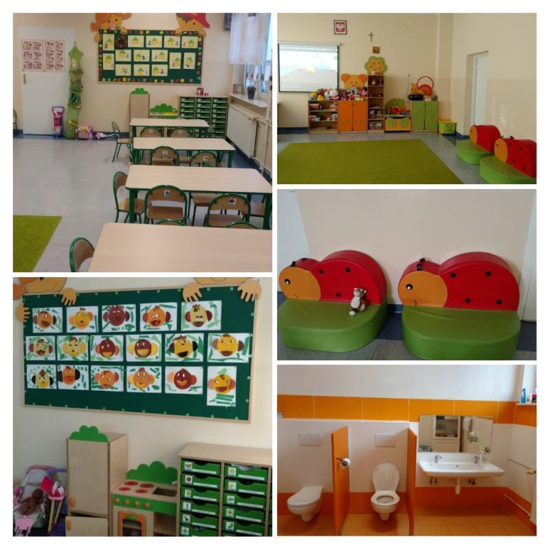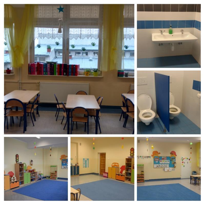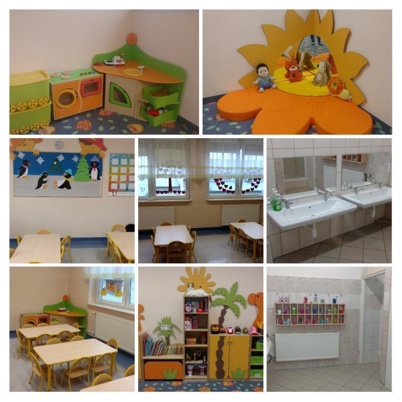 Do dyspozycji mamy duży korytarz, szatnię oraz pięć sal przedszkolnych.